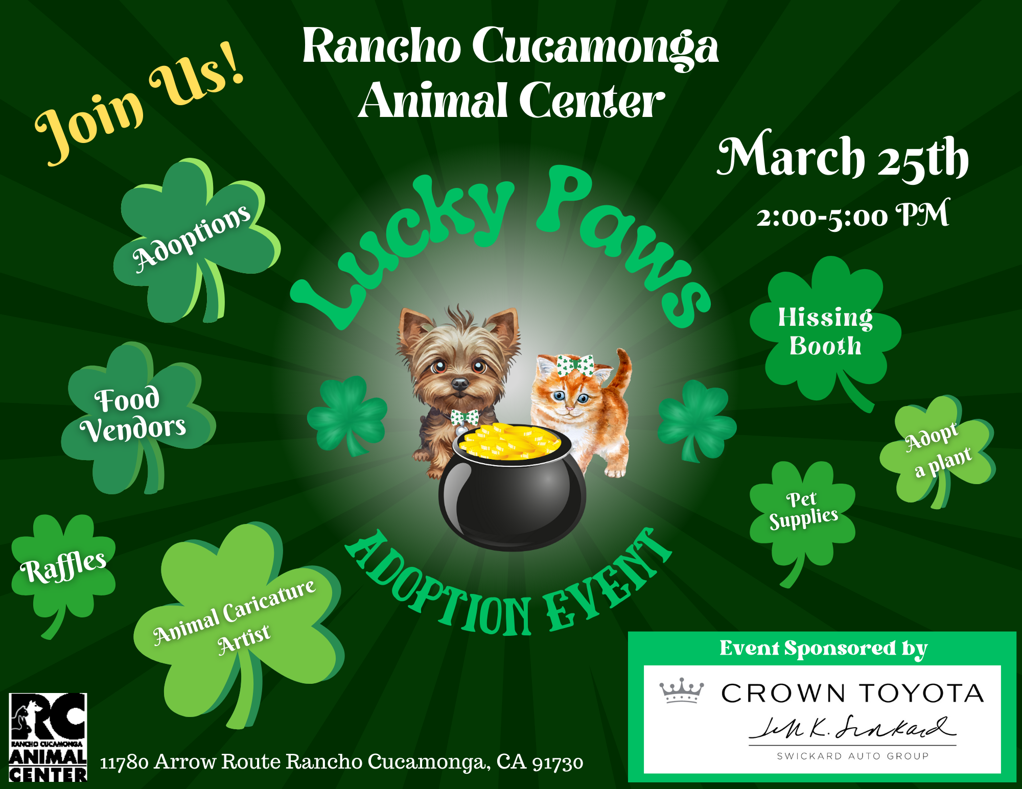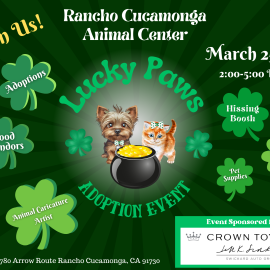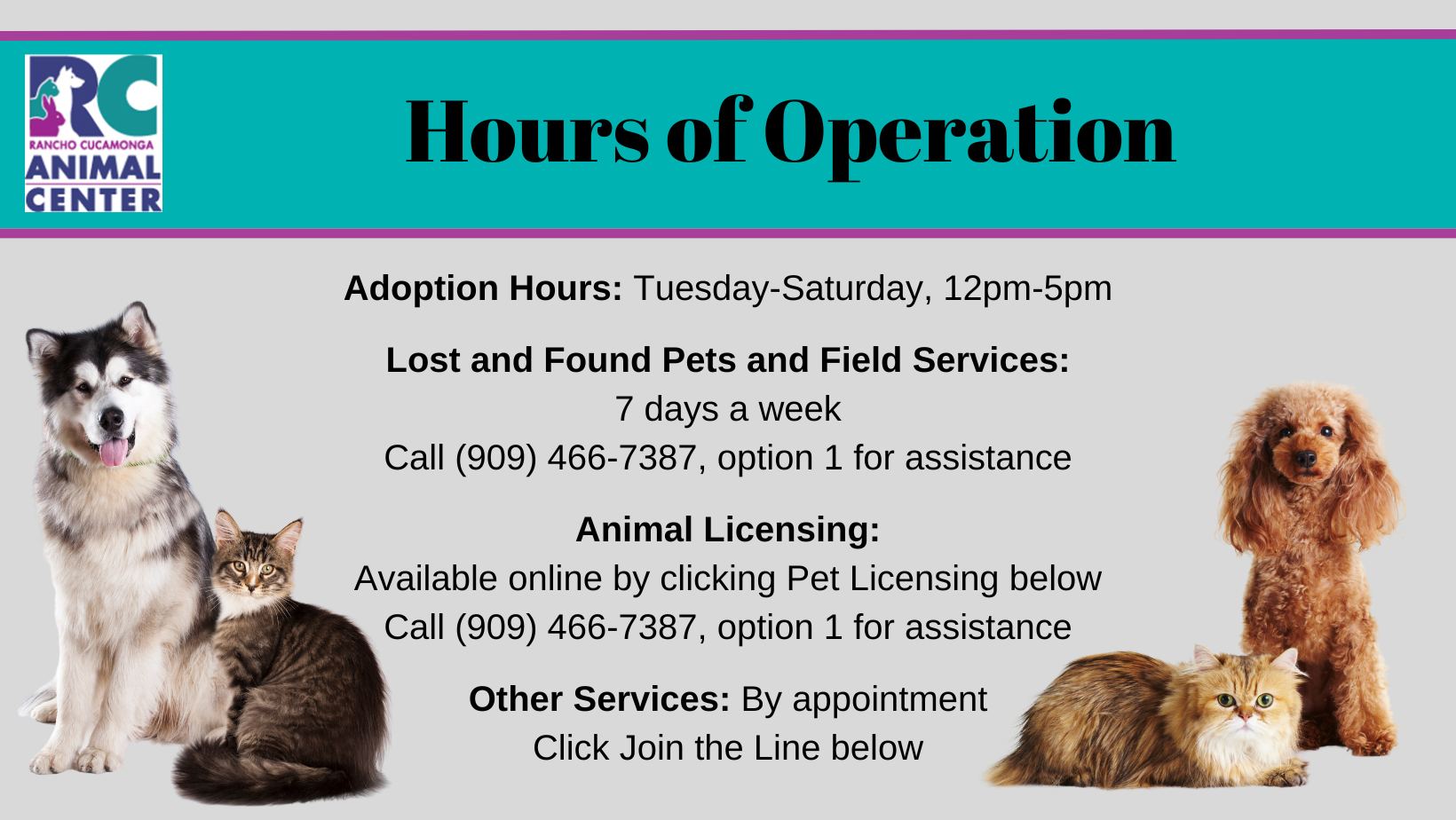 - Owner Surrender Appointments (Rancho Cucamonga Residents Only, up to 2 pets per appointment)