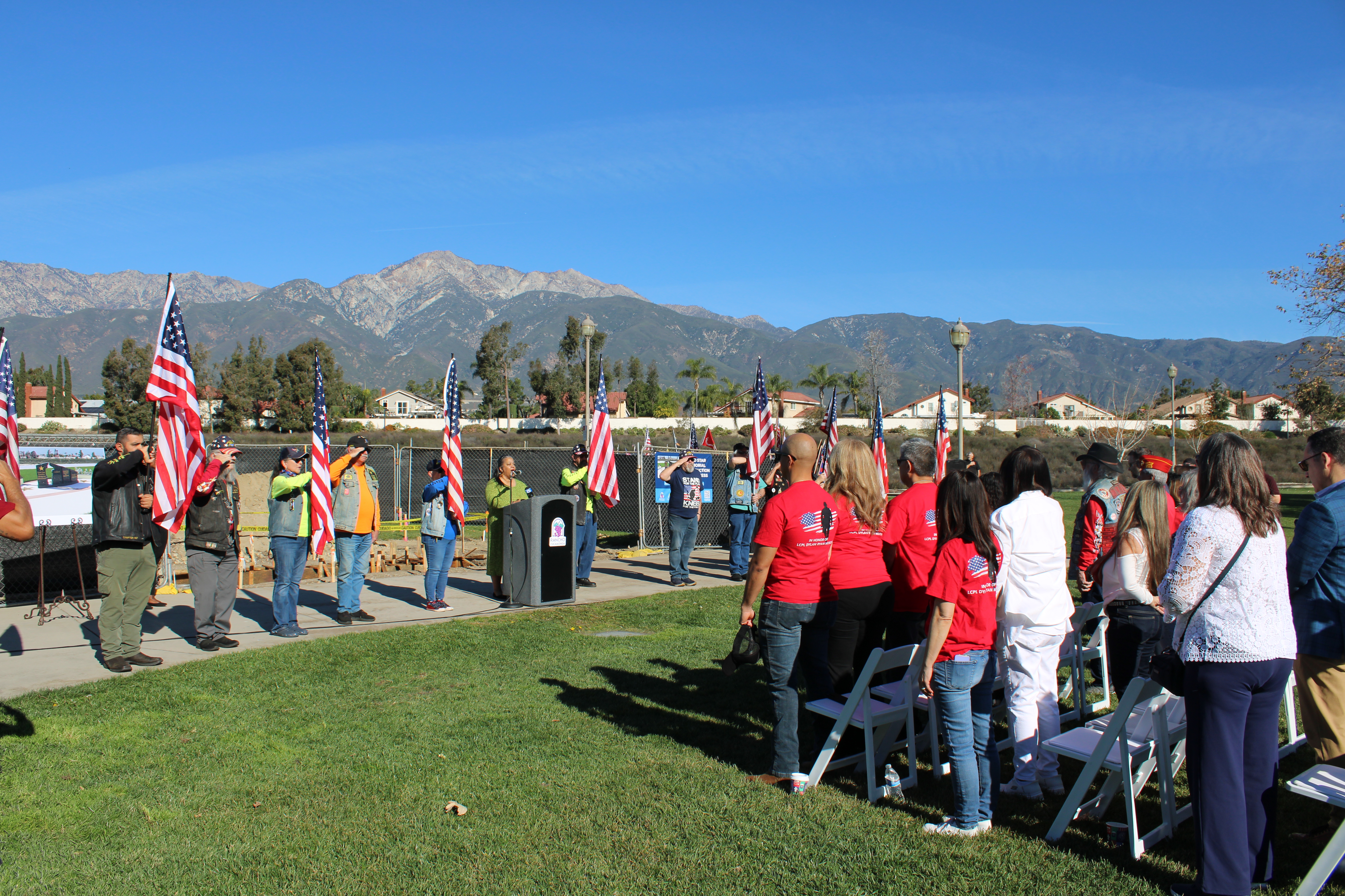 The City of Rancho Cucamonga gathered at Central Park (11200 Base Line Rd.) on January 15, 2026, for the groundbreaking of the Gold Star Memorial Monument, a new community memorial that will honor service members who lost their lives in active military duty and recognize the families who carry their legacy forward. Created by the Woody Williams Foundation, the two-sided black granite monument will feature a silhouette of a saluting service member and will be located near Freedom Courtyard. Developed in collaboration with the Legends Live Forever Foundation, Diversified Pacific Communities, and Architerra Design Group, this memorial will be the first of its kind in San Bernardino County and will join more than 150 similar monuments across the nation. Together, the Gold Star Memorial Monument and Freedom Courtyard will provide a lasting place for reflection, remembrance, and healing within Central Park.