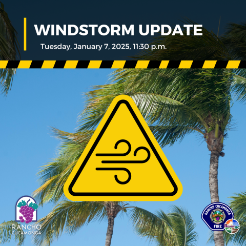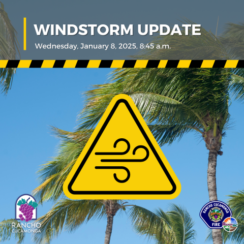 Due to the current windstorm, the City of Rancho Cucamonga has activated its Emergency Operations Center, where the Rancho Cucamonga Fire District, City Public Works and the Rancho Cucamonga Police Department staff are continuously monitoring the weather conditions.