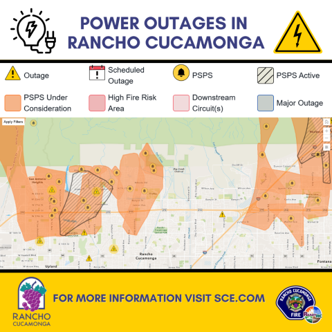 Both Southern California Edison power repair outages and Public Safety Power Shutoff outages are affecting Rancho Cucamonga. The time it takes to restore power after an outage may vary, depending on the extent of damage. But be assured that SCE crews are on the job, and when power is restored their Outage Map will reflect it.