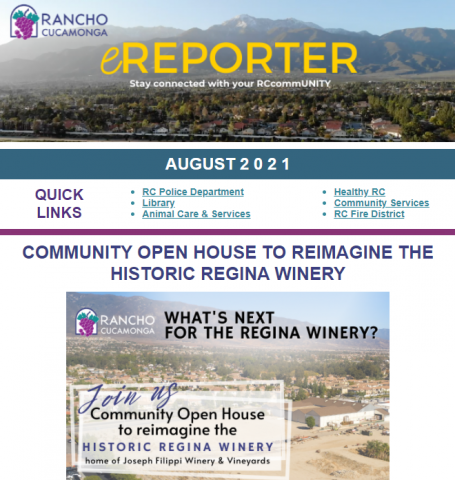 Be sure to read our August newsletter HERE for City of Rancho Cucamonga news and updates. If you're not already a subscriber, sign up for the City of Rancho Cucamonga eNews HERE.