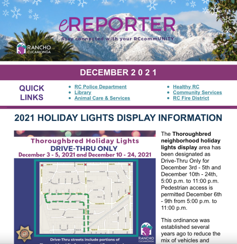Be sure to read our December newsletter HERE for City of Rancho Cucamonga news and updates. If you're not already a subscriber, sign up for the City of Rancho Cucamonga eNews HERE.