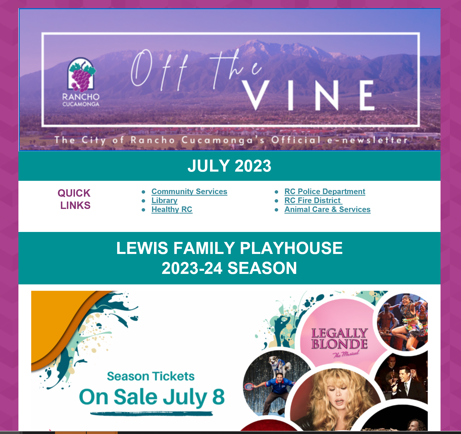 Be sure to read our July newsletter HERE for City of Rancho Cucamonga news and updates. If you're not already a subscriber, sign up for the City of Rancho Cucamonga eNews HERE.