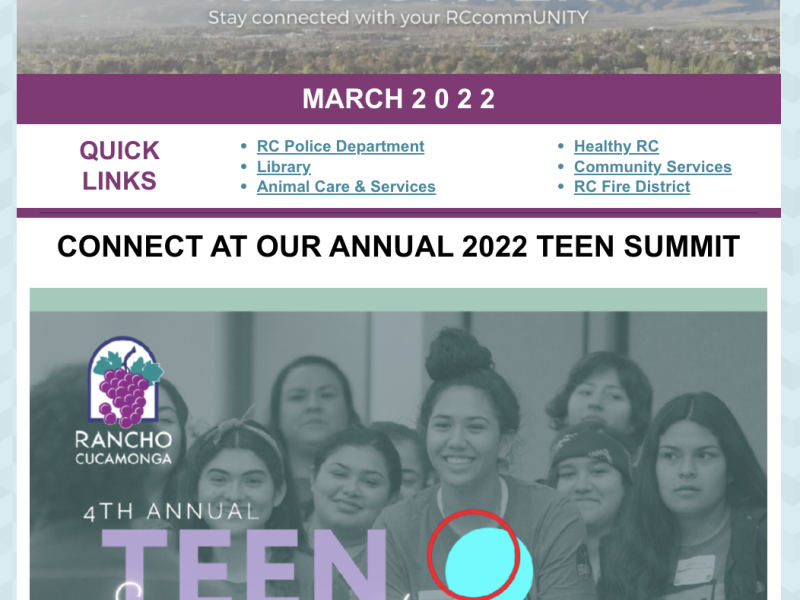 Be sure to read our March newsletter HERE for City of Rancho Cucamonga news and updates. If you're not already a subscriber, sign up for the City of Rancho Cucamonga eNews HERE.